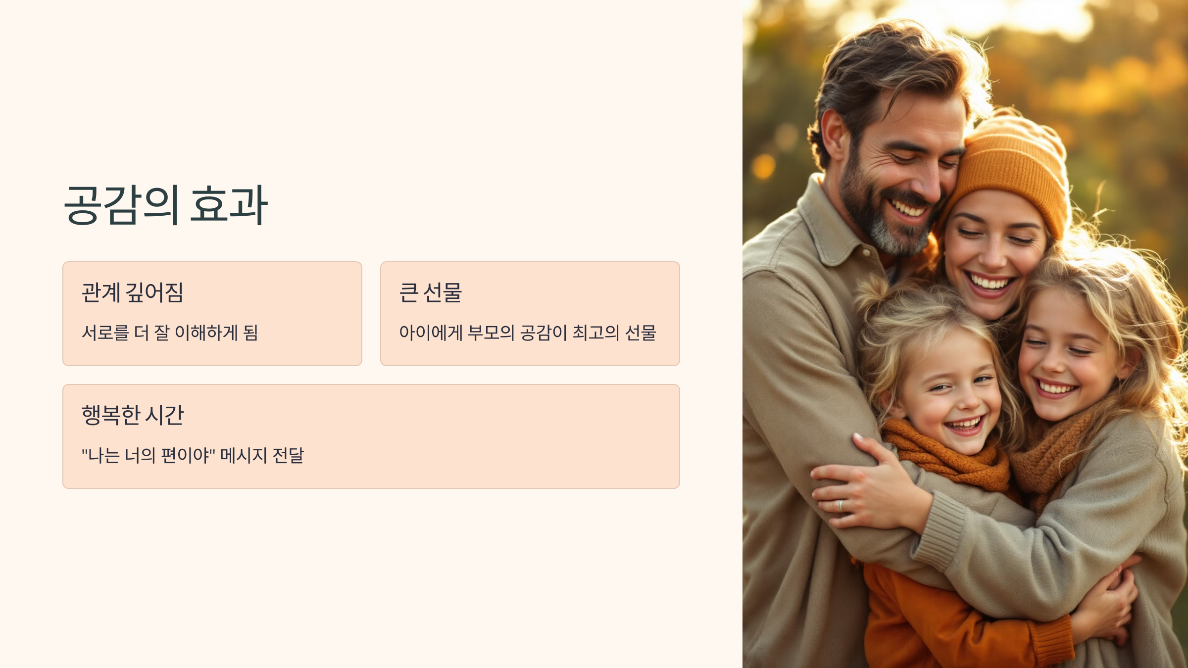 바쁜 일상 속에서 아이와의 대화를 돌아보면, 단순히 조언하거나 문제를 해결하려고만 했던 순간들이 떠오르곤 해요. 공감은 단순히 아이의 이야기를 듣는 것을 넘어, 아이가 느끼는 감정을 이해하고 그것을 함께 나누는 과정이에요. 😊