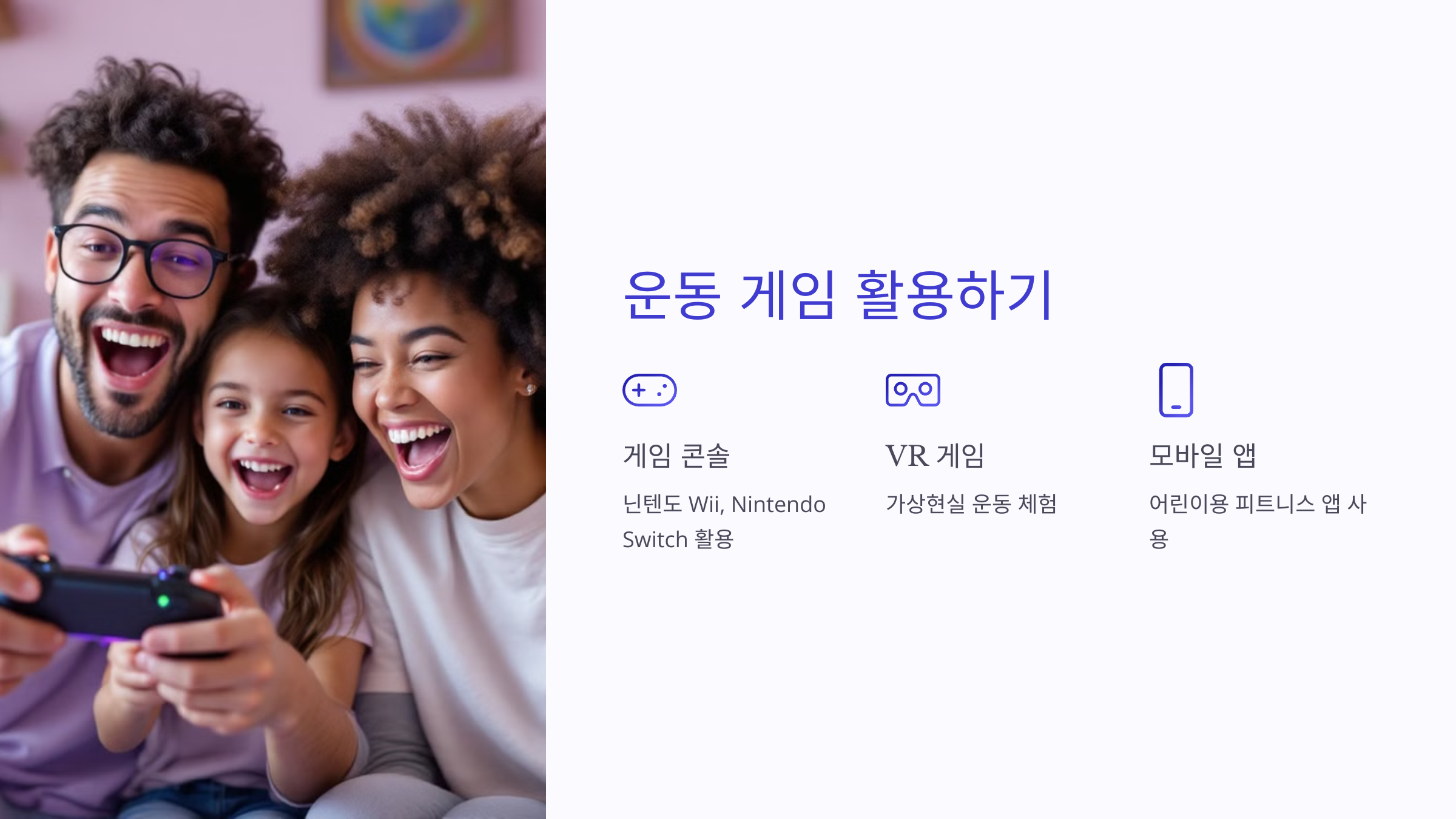 아이들이 좋아하는 게임 콘솔이나 모바일 앱을 활용하면 운동과 놀이를 결합할 수 있습니다.